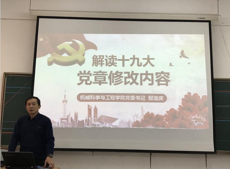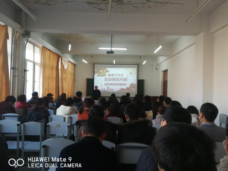 ,KY开元集团官网入口党委书记邹龙庆同志在机电馆509给全院教工党员做了“解读十九大对《中国共产党章程》内容修改”的专题讲座,有74名教工党员聆听了本次讲座。