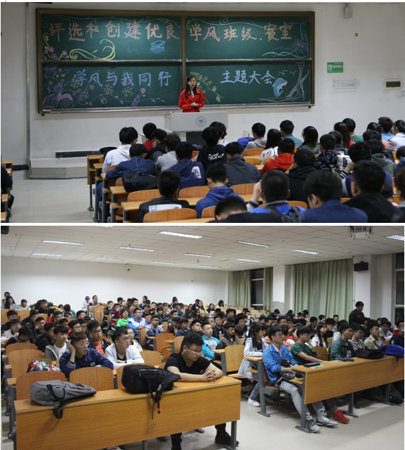 首先,卢老师对《评选和创建优良学风班级、寝室》具体条件进行了深入解读,鼓励各班班委和寝室长发挥他们在班级、寝室在学风建设中模范带头作用,提高自律意识和服务意识,通过“优良学风寝室、班级”的评选,综合考量班级上课出勤率、课堂表现情况、考试成绩优秀率、及格率、参加竞赛情况、参加科技文体活动情况、宿舍卫生状况、宿舍学习文化氛围等方面进行学风树优。同时卢老师也强调要端正学风诚信考试,在所有考试中,自觉遵守考试纪律,公平参与考试竞争;认真备考、以诚迎考、不违纪、不作弊,创诚信校园、树诚信考风、做诚信学生。