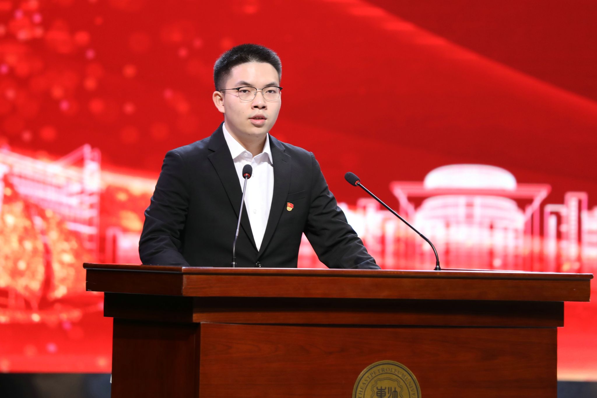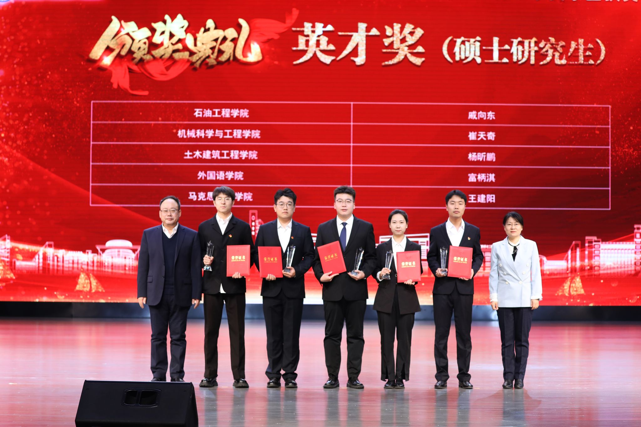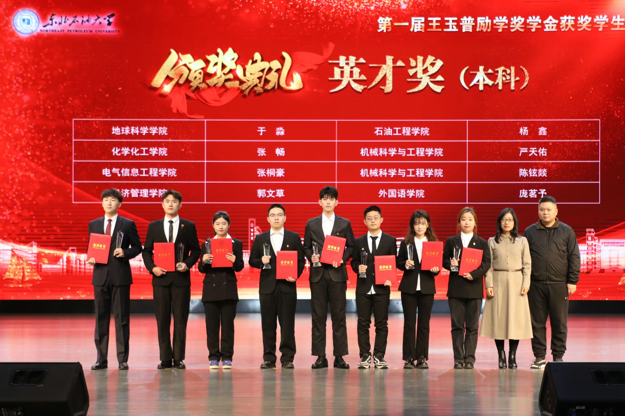 KY官网严天佑代表获奖学生发言。他向王玉普院士、各位捐赠人、学校、老师表达感谢,表示要心怀感恩、不负期待、勤学知识、苦练本领,传承弘扬大庆精神铁人精神,接过老一辈石油人手中的旗帜,助力国家能源事业发展,让青春在中国式现代化火热实践中绽放绚丽之花。