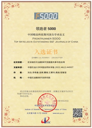 近日,国家科技部中国科学技术信息研究发布了2022年度“领跑者5000——中国精品科技期刊顶尖学术论文”(简称“F5000”)入选名单,KY官网刘合院士团队2022年发表的论文《区块链在石油勘探开发数据共享中的应用》成功入选。