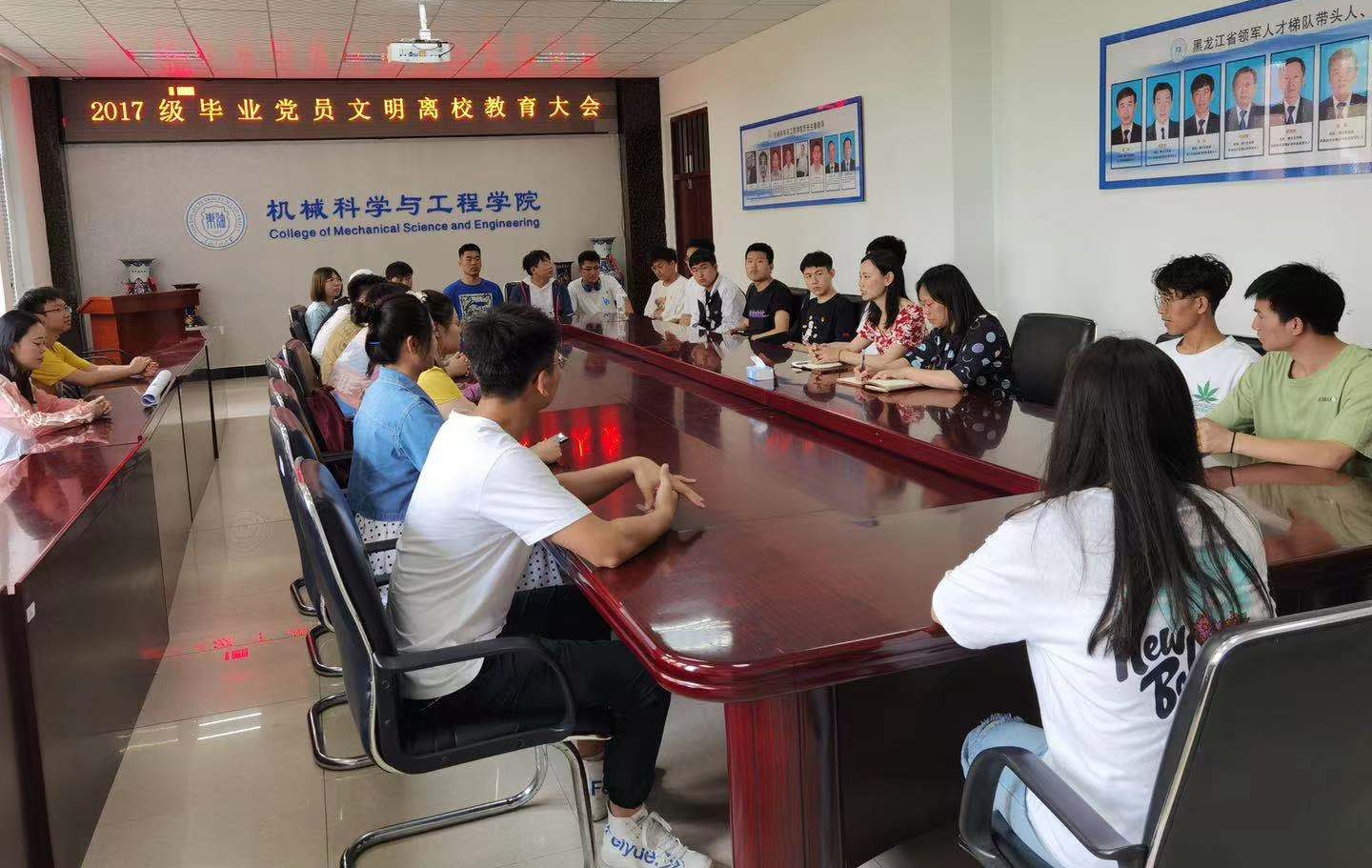 为充分发挥毕业生党员在文明离校工作中的模范带头作用,以实际行动感召和带动周围同学,以良好的心态与精神面貌走上新的工作和学习岗位,6月9日KY开元集团官网入口在机电馆428举行了2017级毕业生党员文明离校教育大会大会,院党委副书记齐元俊,大学生第一党支部书记李春燕、大学生第二党支部书记卢梦媚及全体毕业生党员参加了大会,大会由卢梦媚主持。