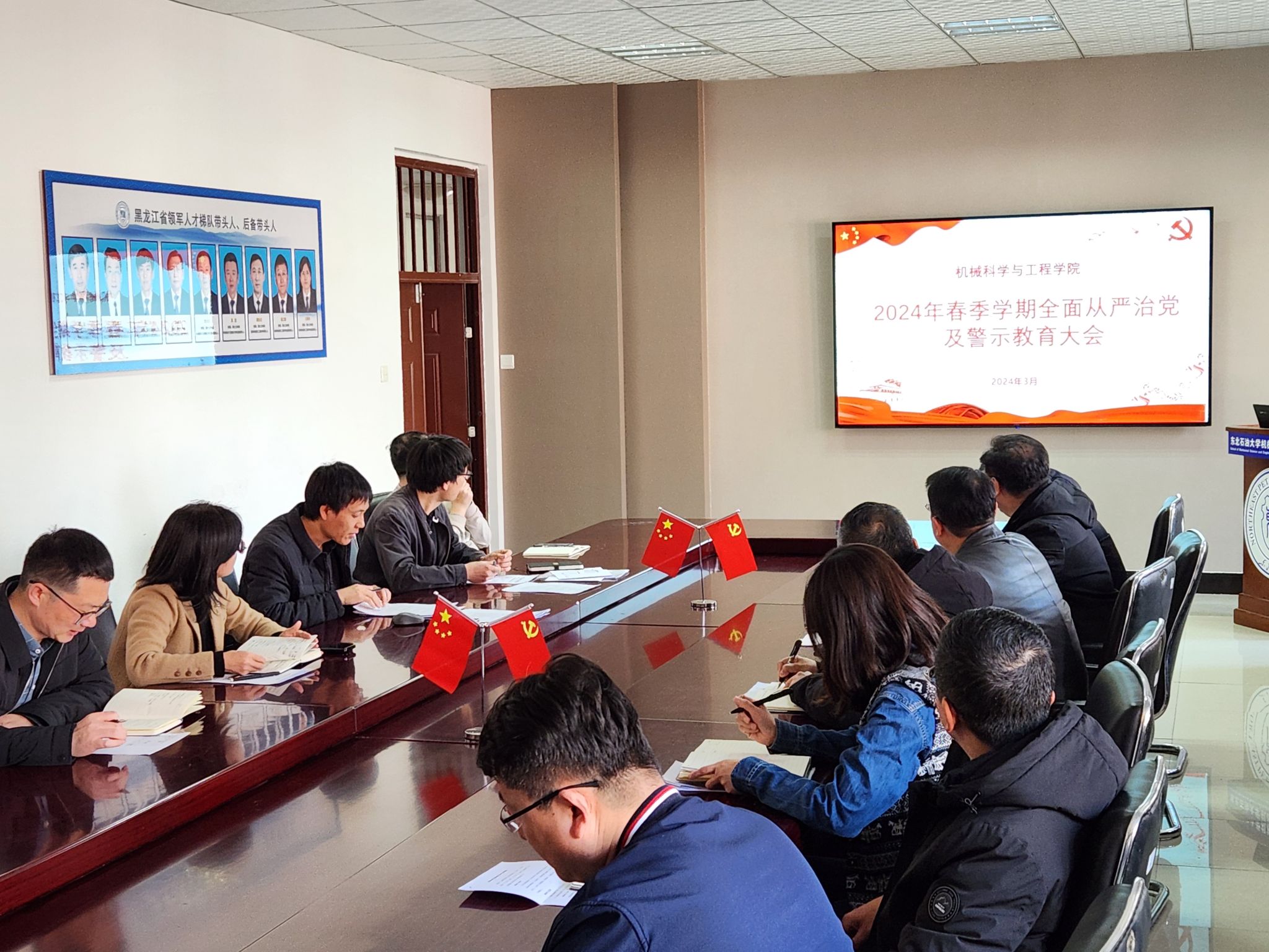 党委书记王勇传达了学校关于全面从严治党及警示教育的要求,通报了2023年12月以来党员干部违纪和处分情况,梳理了高校教师违反政治纪律,违反组织纪律,违反工作纪律,违反职业道德,违反财经纪律,违反公共秩序、社会公德、家庭美德,违反廉洁从业纪律等师德师风警示教育案例。